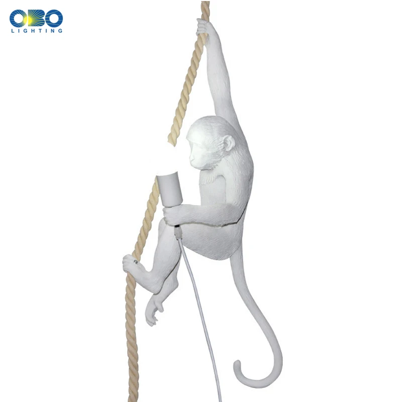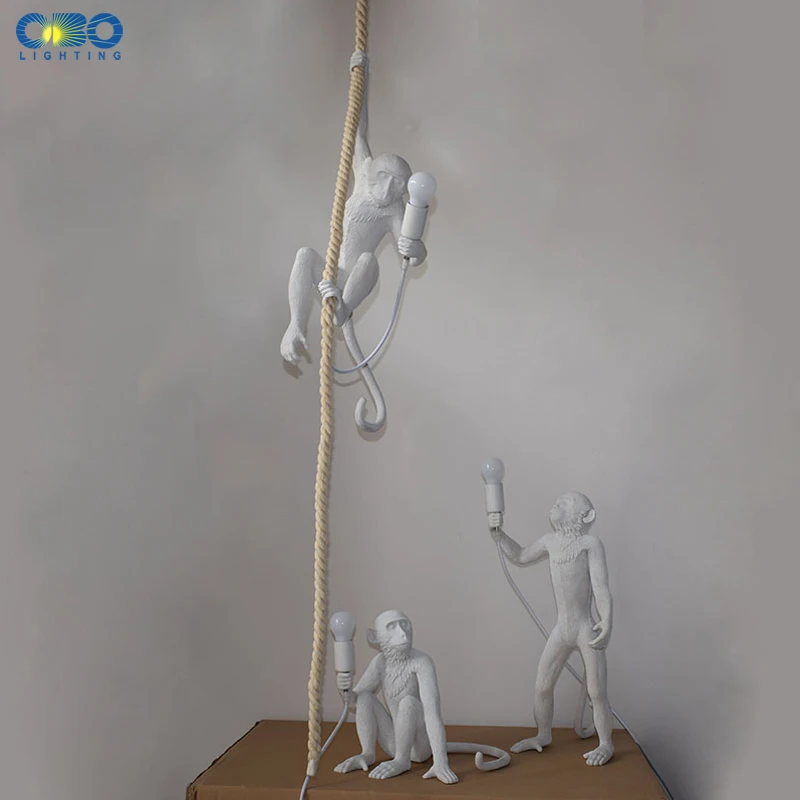 Resin Monkey Pendant Lamp Black/White Modern E27 LED Bar/Bedside/Living Room Indoor Lighting Twine Cable Vintage Pendant Lights look the best product that related to