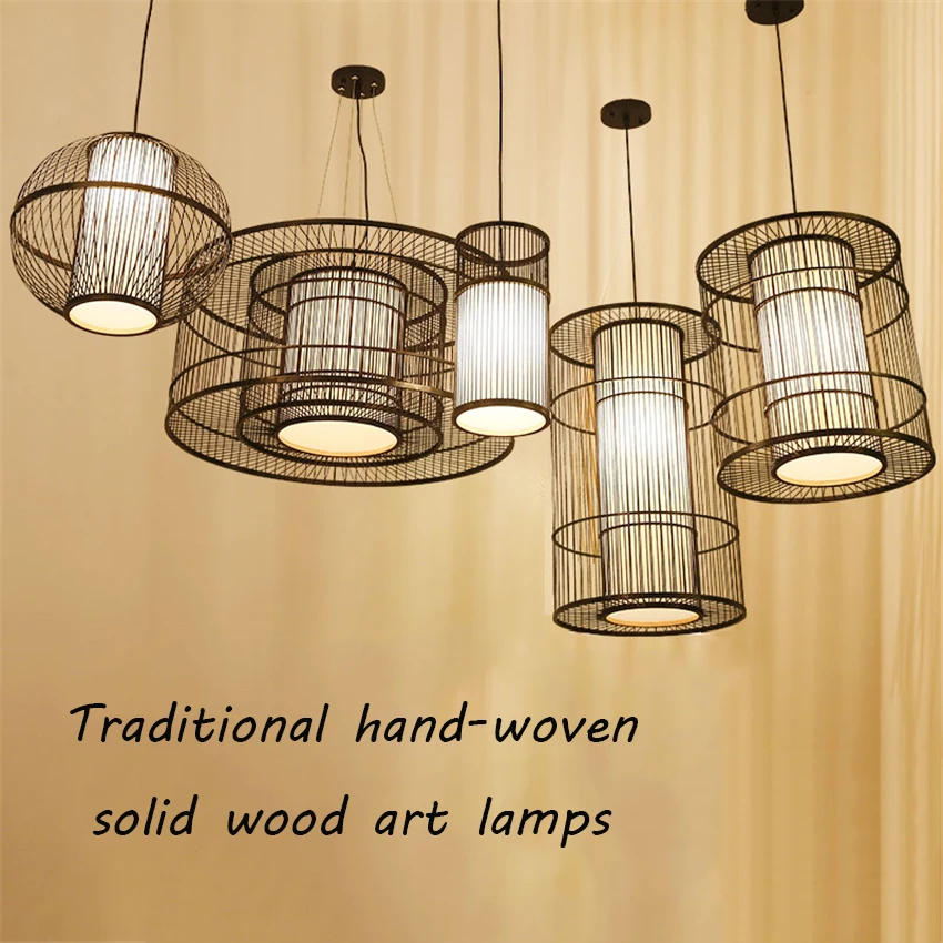 Southeast Asian Classic Wood Pendant Lights Vinatge Living Room Hotel Hall Pendant Lamp Bedroom Hanging Lamps Kitchen Fixtures 1504